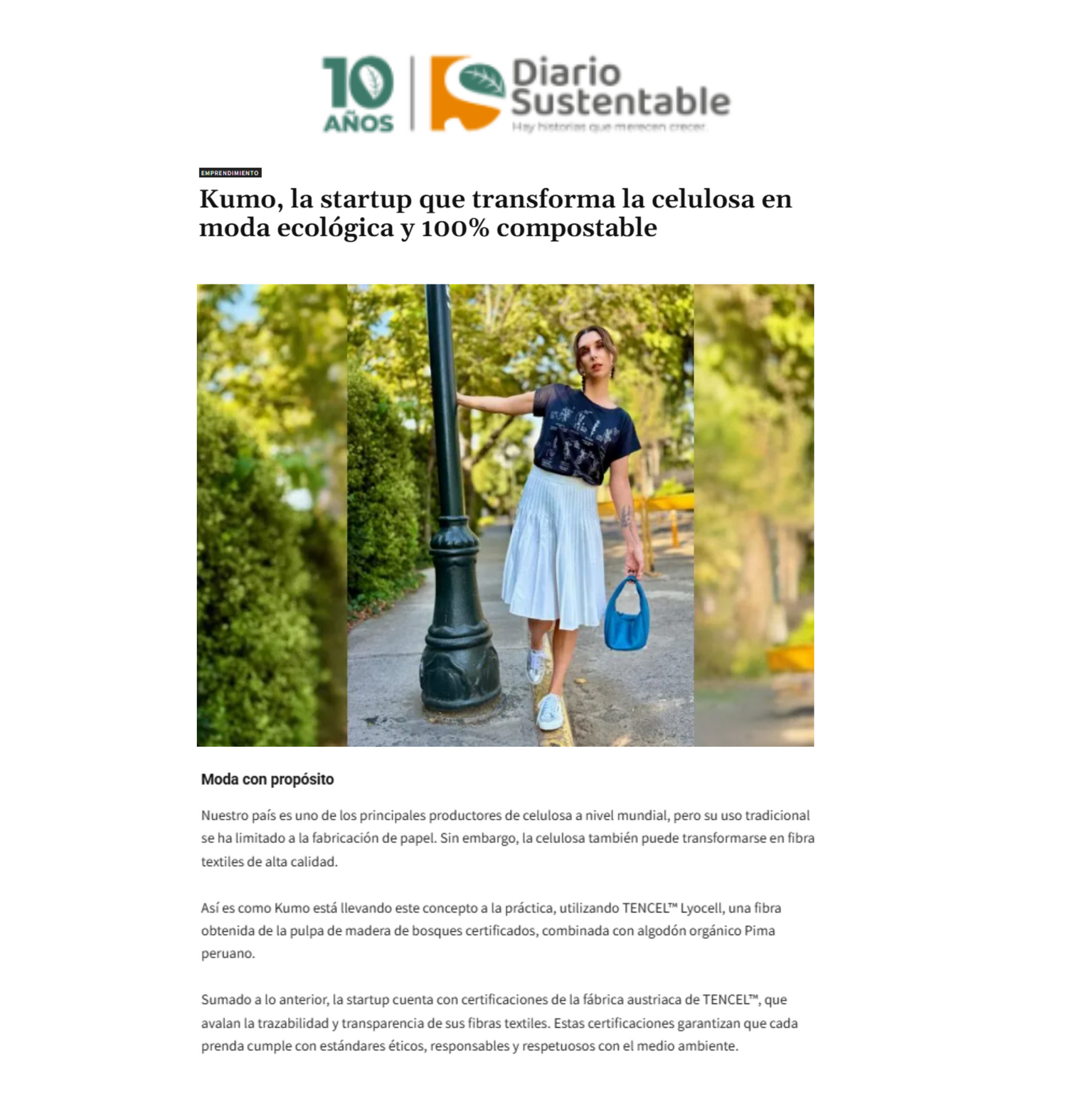 La industria de la moda atraviesa uno de sus mayores desafíos: disminuir su huella ecológica. En este contexto nace Kumo, la primera startup de moda en Chile que convierte madera en ropa, creando prendas 100% biodegradables y compostables, fusionando la tecnología textil y un diseño consciente.